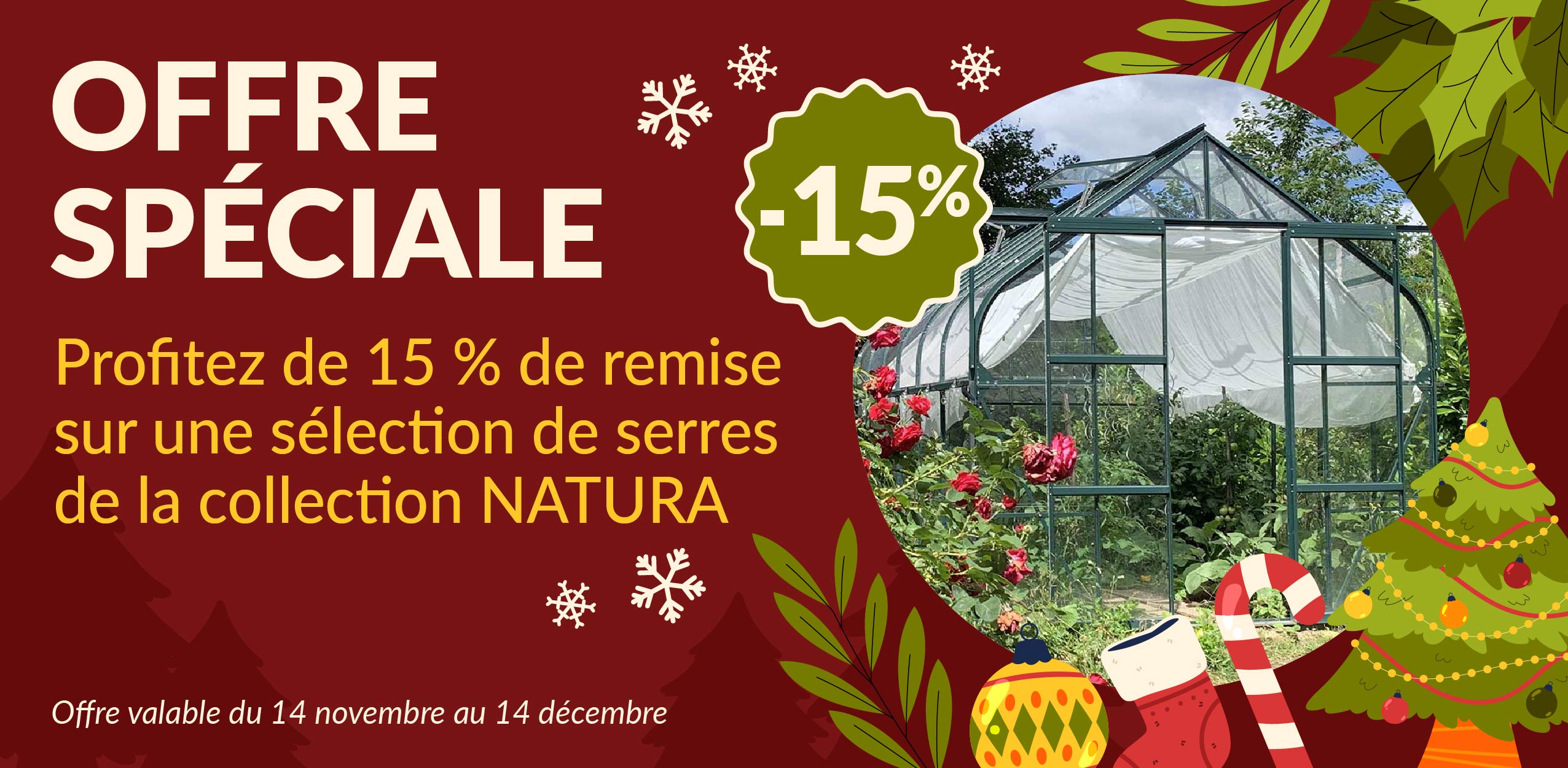 C’est la serre de jardin de qualité (verre trempé sécurit, aluminium et inox) à un prix très attractif. Les serres Natura existent en modèles de petite taille que vous pouvez installer sur une terrasse. Idéale pour les premiers pas au jardin, pour les petits budgets ou tout naturellement pour préparer semis et plants. Les coloris d'une serre en verre Natura sont fixes : aluminium naturel, vert ou anthracite suivant les modèles. Â
